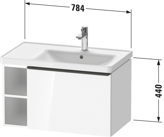 Höhe 44 cm, wandhängend, für D-Neo Waschtisch 237080, Regalelement seitlich links, nur mit Raumsparsiphon montierbar, Inneneinteilung optional möglich, lose einlegbar UV 9845