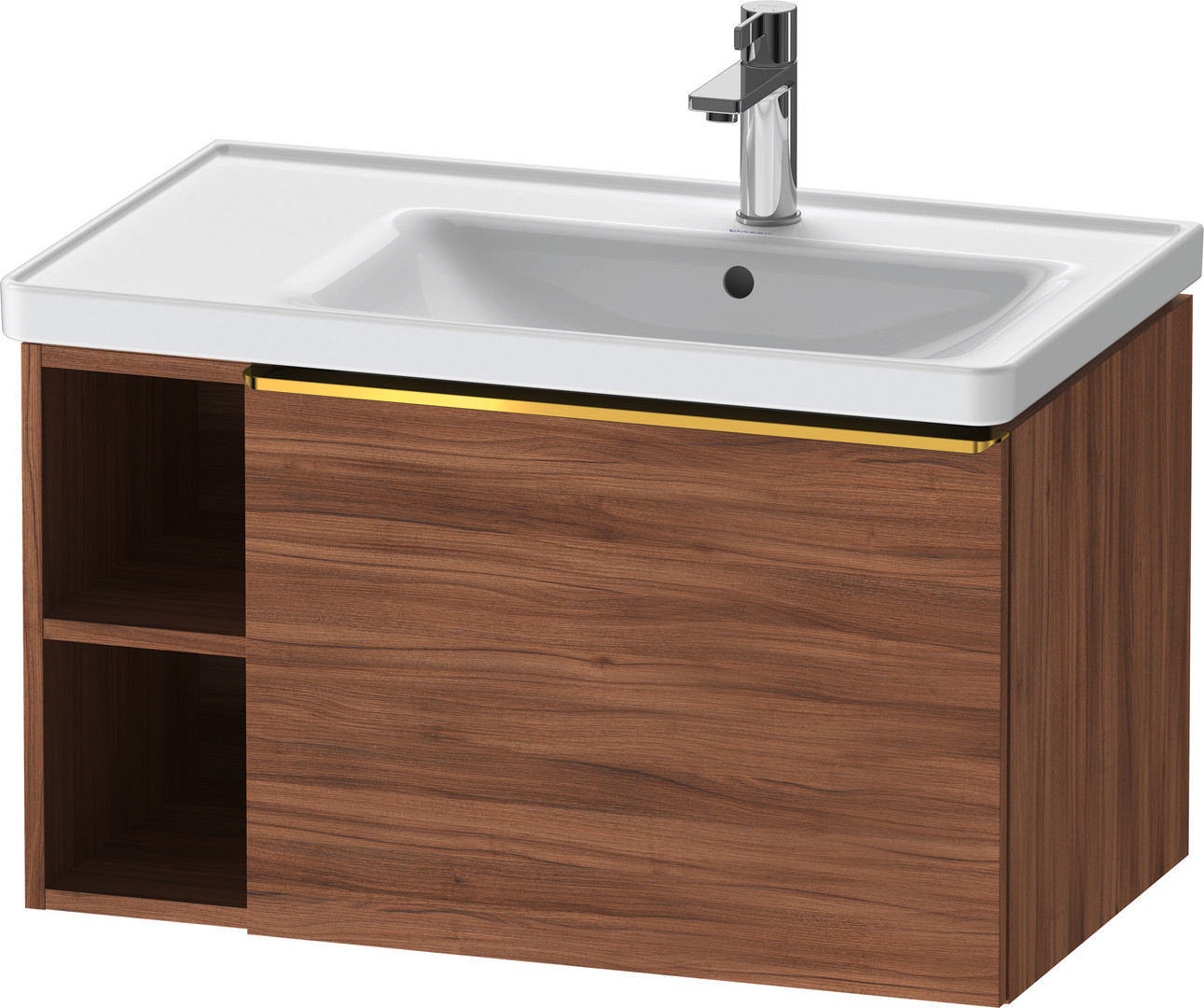 Duravit Waschtisch-Unterschrank D-Neo 78,4x45,2cm, 1 Auszug, Becken rechts, Gold poliert/Nussbaum Natur