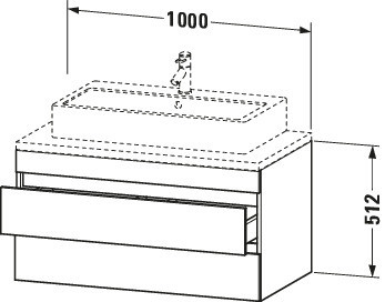 Höhe 51,2 cm, oberer Schubkasten mit Siphonausschnitt und Schürze, min. Wandabstand 2 cm, Inneneinteilung optional möglich, lose einlegbar UV 9846