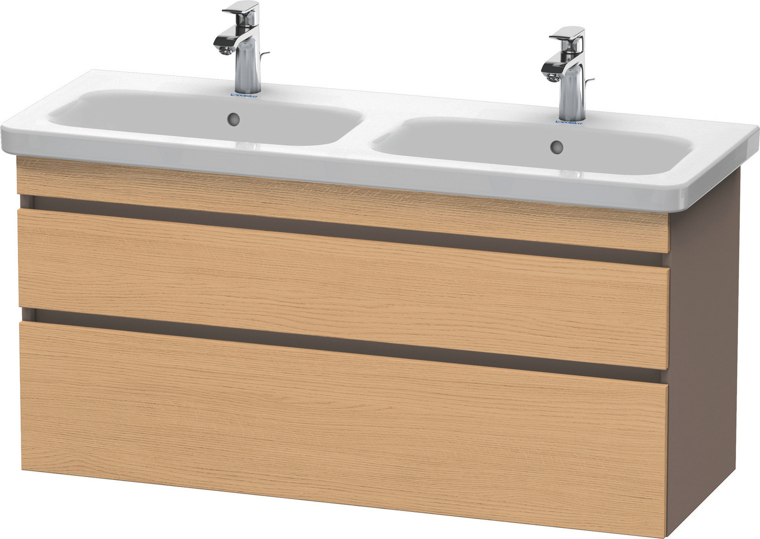Duravit Waschtisch-Unterschrank DuraStyle 123x44,8x61cm, 2 Auszüge, Becken links/rechts, eiche natur/basalt matt