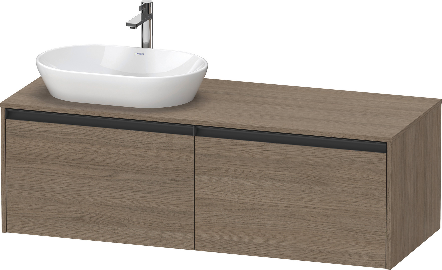 Duravit Waschtisch-Unterschrank Ketho.2 140 x 55 cm, Becken links, Eiche terra, 2 Auszüge, wandhängend