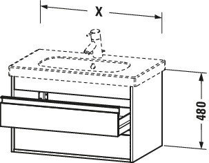 Höhe 48 cm, für Waschtische D-Code 034265/034285/034210/034812, oberer Schubkasten mit Siphonausschnitt und Schürze, Röhrensiphon 005026 ist empfehlenswert, Inneneinteilung optional möglich, lose einlegbar UV 9845