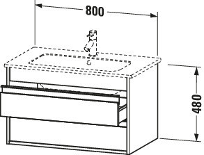 Höhe 48 cm, oberer Schubkasten mit Siphonausschnitt und Schürze, für ME by Starck 233663/233683/233610/233612/236112, Raumsparsiphon 005076 ist empfehlenswert, Inneneinteilung optional möglich, lose einlegbar UV 9845