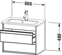 Höhe 48 cm, oberer Schubkasten mit Siphonausschnitt und Schürze, für ME by Starck 234263/234283, Raumsparsiphon 005076 ist empfehlenswert, Inneneinteilung optional möglich, lose einlegbar UV 9855