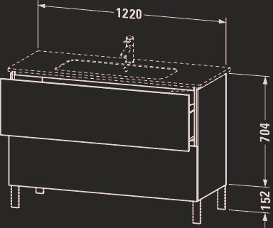 Höhe 70,4 cm, oberer Schubkasten mit Siphonausschnitt und Schürze, für Waschtisch Me by Starck 233663/233683/233610/233612/236112, geeignet für Raumsparsiphon 00507, passend zu Sockelfüße UV 9991/9992/9993/9994