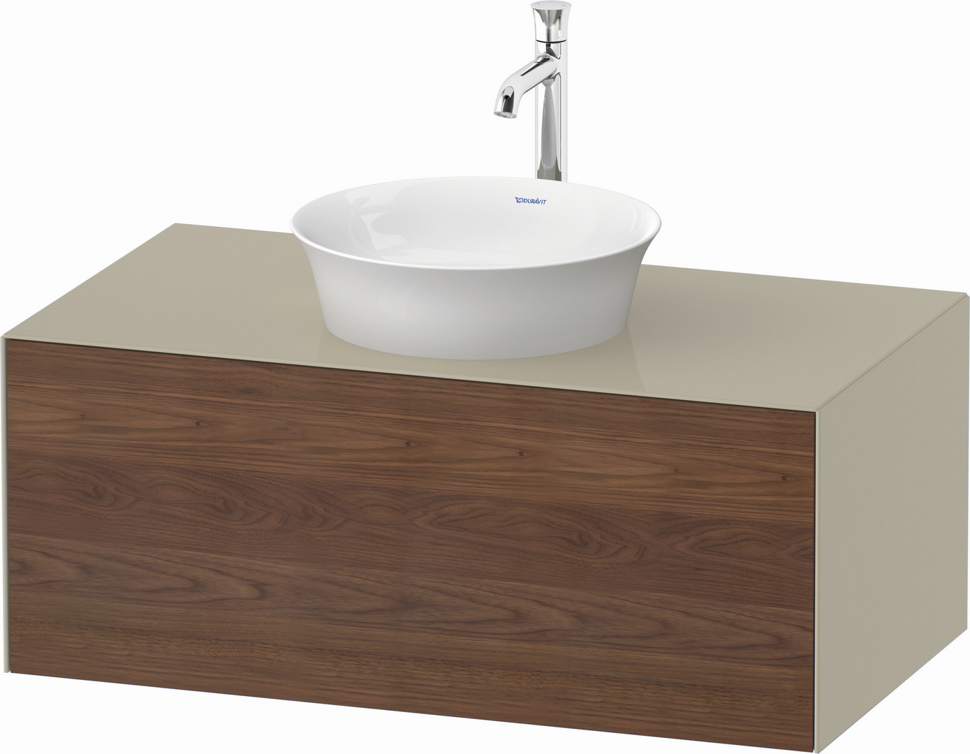 Duravit Waschtisch-Unterschrank White Tulip 100 x 55 cm, amerikanischer Nussbaum massiv/taupe hochglanz, 1 Auszug, 1 Konsolenplatte, wandhängend