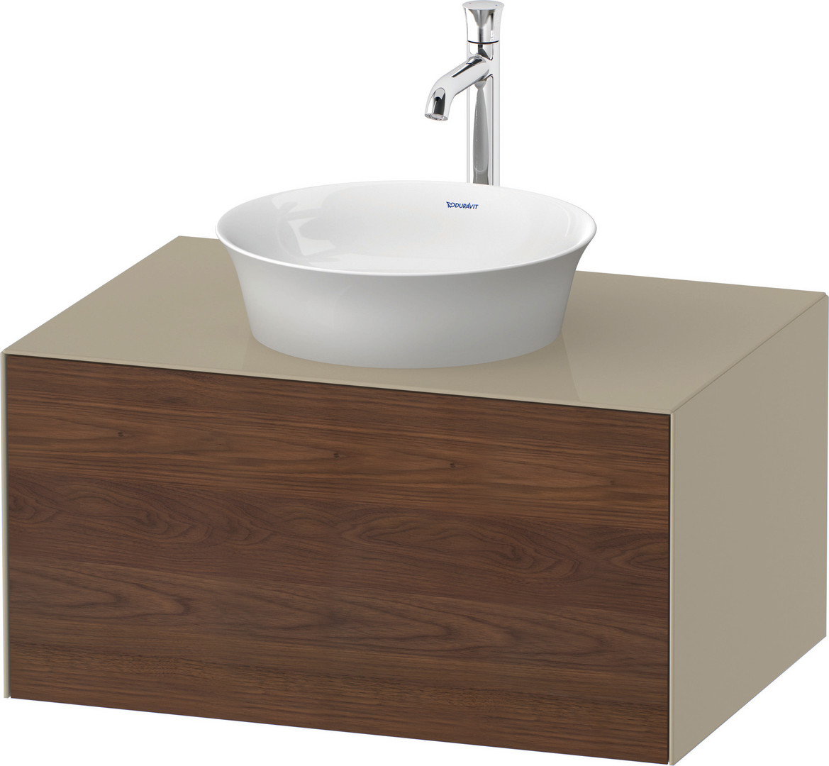 Duravit Waschtisch-Unterschrank White Tulip 80 x 55 cm, amerikanischer Nussbaum massiv/taupe hochglanz, 1 Auszug, 1 Konsolenplatte, wandhängend