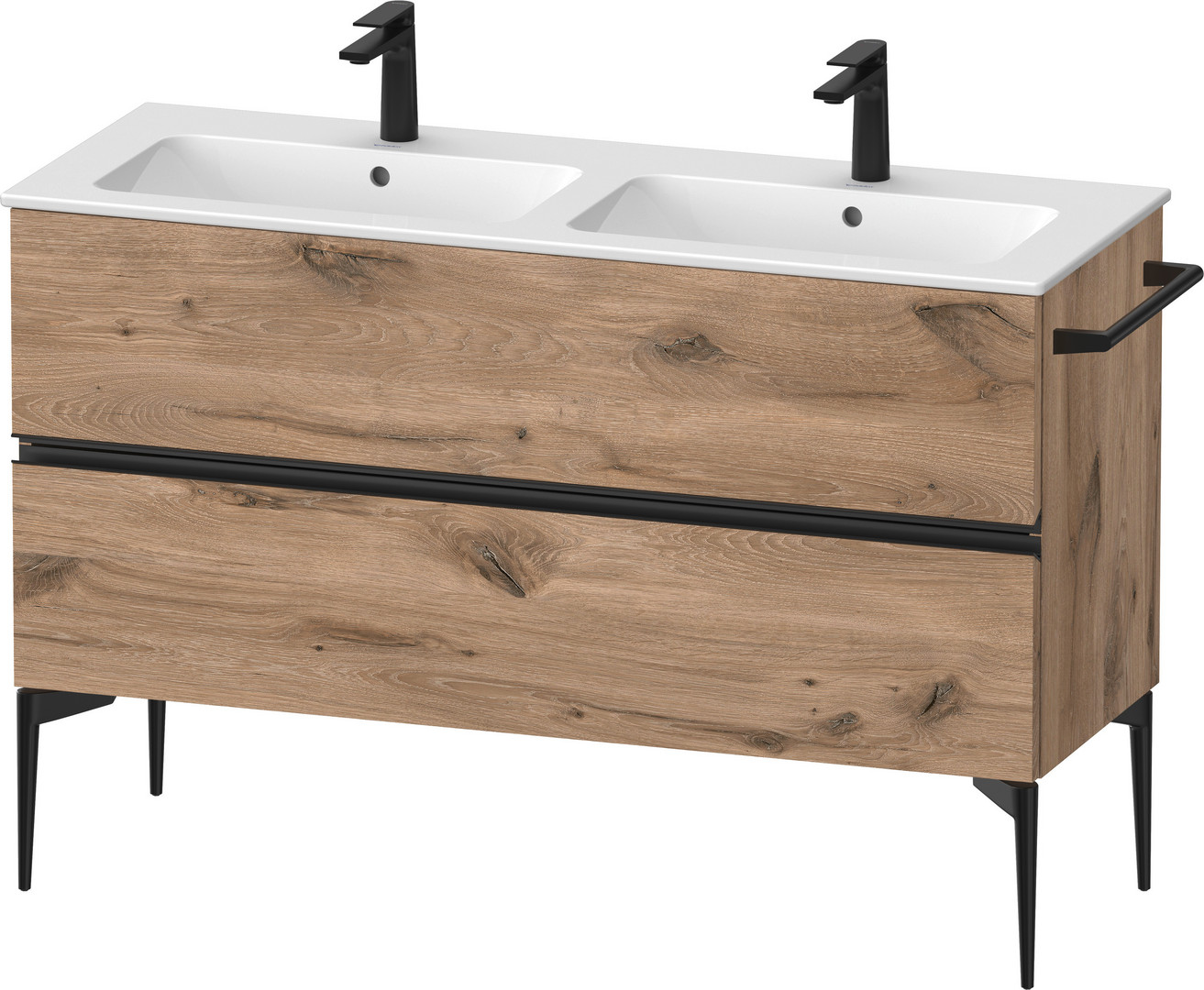 Duravit Waschtisch-Unterschrank bodenstehend Sivida 128 x 59,1 x 47,7 cm, 2 Schubkästen, Eiche Marmorie, Griff diamantschwarz