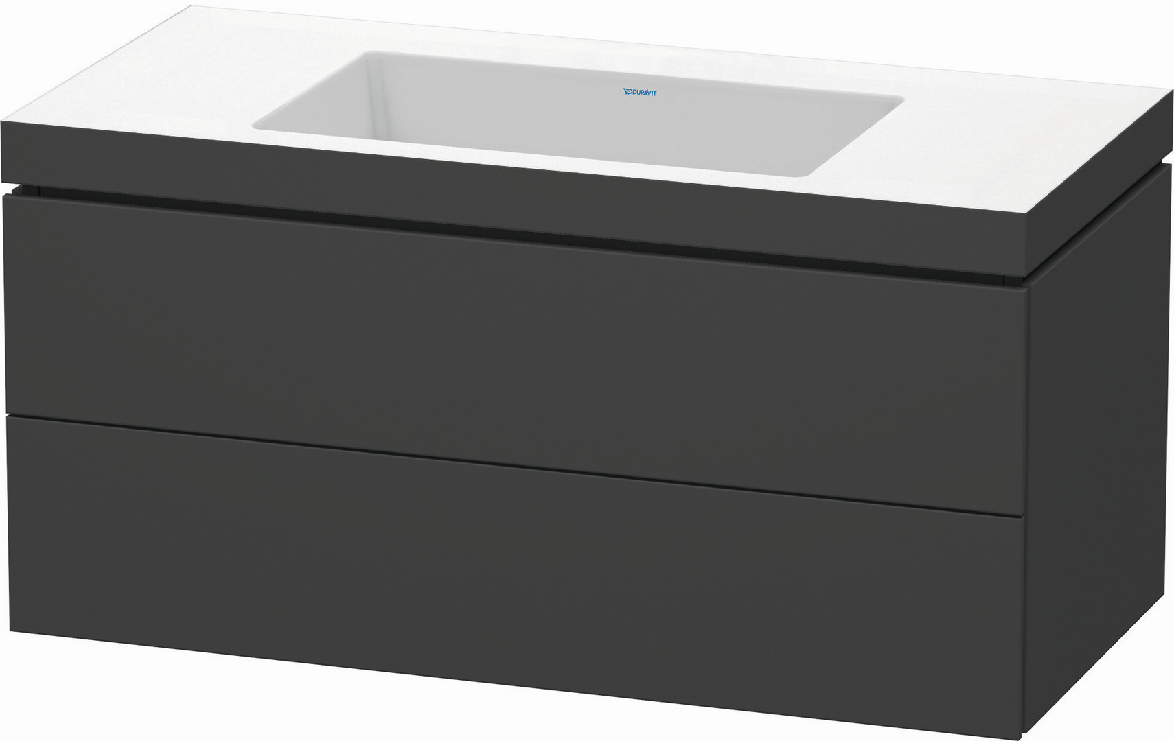 Duravit Waschtisch-Unterschrank c-bonded L-Cube 100 x 48 cm, ohne Hahnloch, graphit matt, 2 Schubkästen, wandhängend