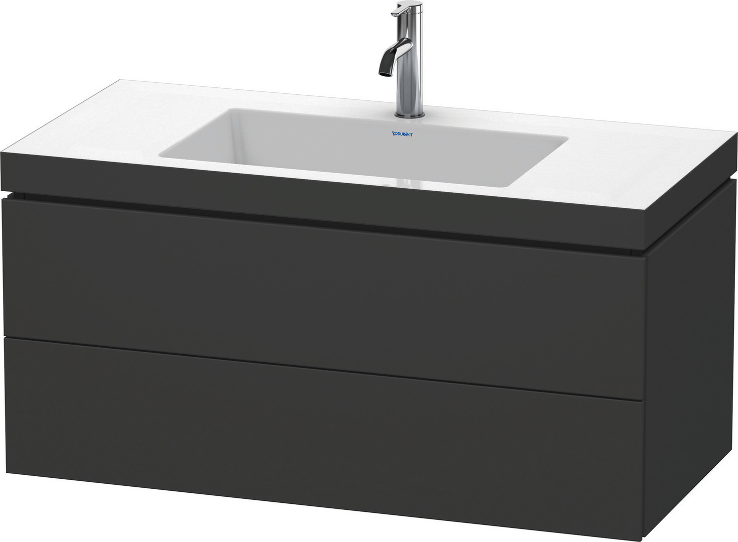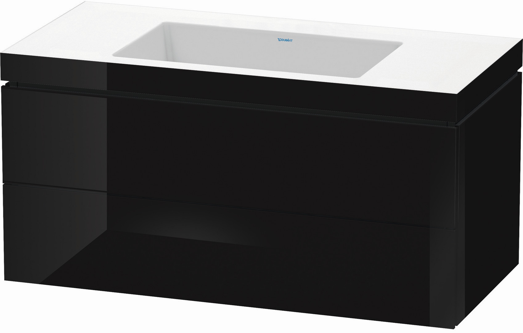 Duravit Waschtisch-Unterschrank c-bonded L-Cube 100 x 48 cm, ohne Hahnloch, schwarz hochglanz, 2 Schubkästen, wandhängend