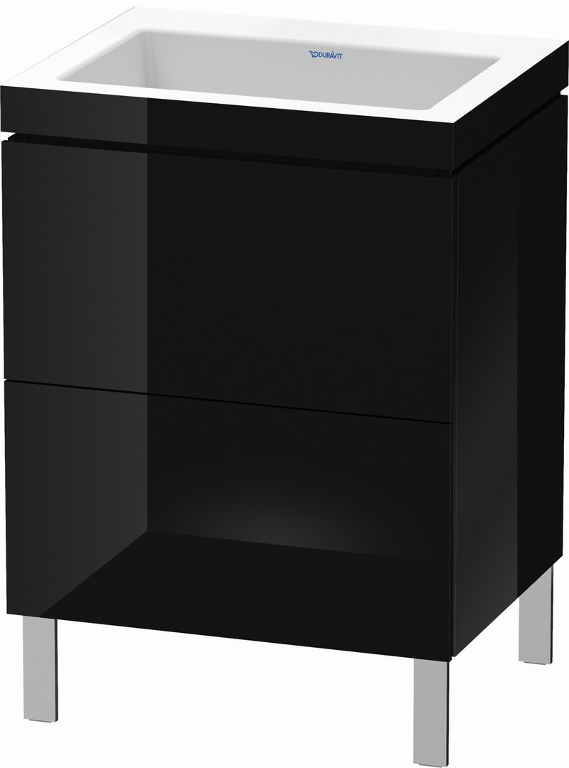 Duravit Waschtisch-Unterschrank c-bonded L-Cube 60 x 48 cm, ohne Hahnloch, schwarz hochglanz, 2 Auszüge, stehend