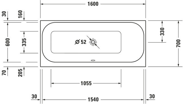 Duravit Whirlwanne Happy D.2 160 x 70 cm, Jet-System, Einbauversion, 1 Rückenschräge rechts, weiß W207774