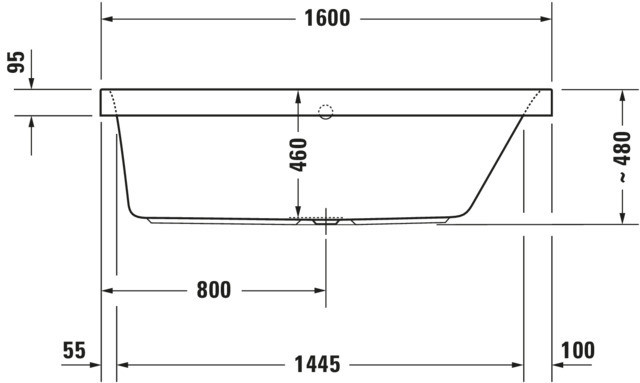 zentraler Ablauf, Material Sanitäracryl, Nutzinhalt 145/150/180 l, mit Fußgestell, Ab- und Überlaufgarnitur