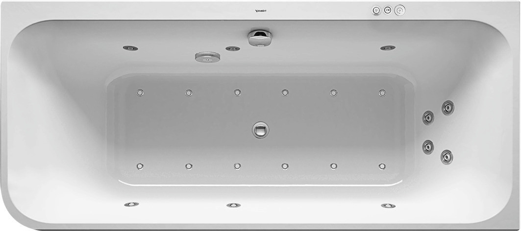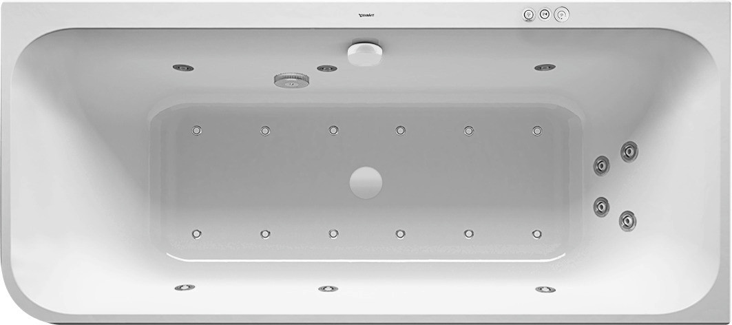 Duravit Whirlwanne Happy D.2 Plus 180x80cm, Ecke rechts, 2 Rückenschrägen, weiß, Jet-System W207925