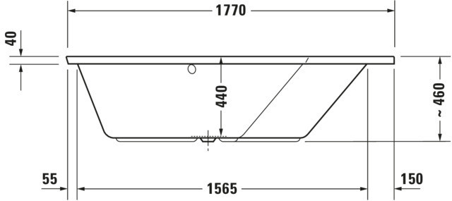 2 unterschiedliche Rückenschrägen rechts, zentraler Ablauf, Material Sanitäracryl, Nutzinhalt 205 l, mit Fußgestell, Ab- und Überlaufgarnitur