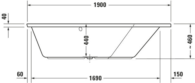 2 unterschiedliche Rückenschrägen rechts, zentraler Ablauf, Material Sanitäracryl, Nutzinhalt 267 l, mit Fußgestell, Ab- und Überlaufgarnitur