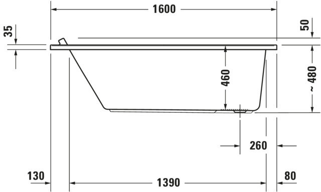 Duravit Whirlwanne Starck 160 x 70 cm, Jet-System, Einbauversion, 1 Rückenschräge, weiß W207825