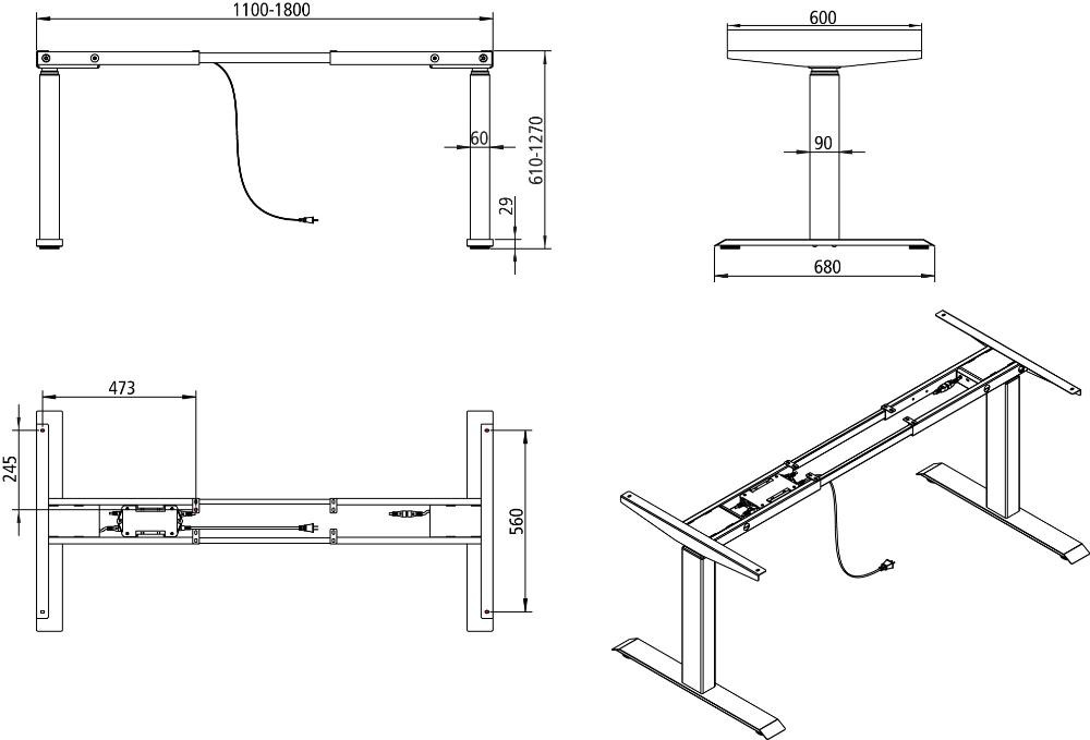 Elektrisches Tischgestell als Sitz-/Steh-Arbeitsplatz Hub 450 mm