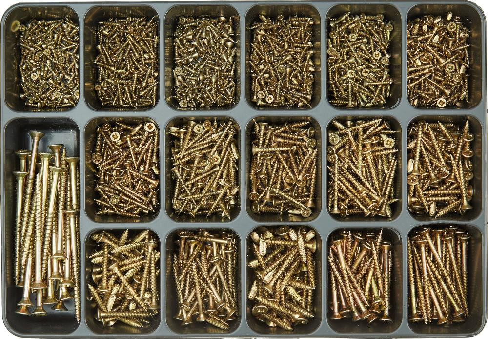 Spanplattenschrauben-Sortiment, Senkkopf, Kreuzschlitz Z, gelb verzinkt
