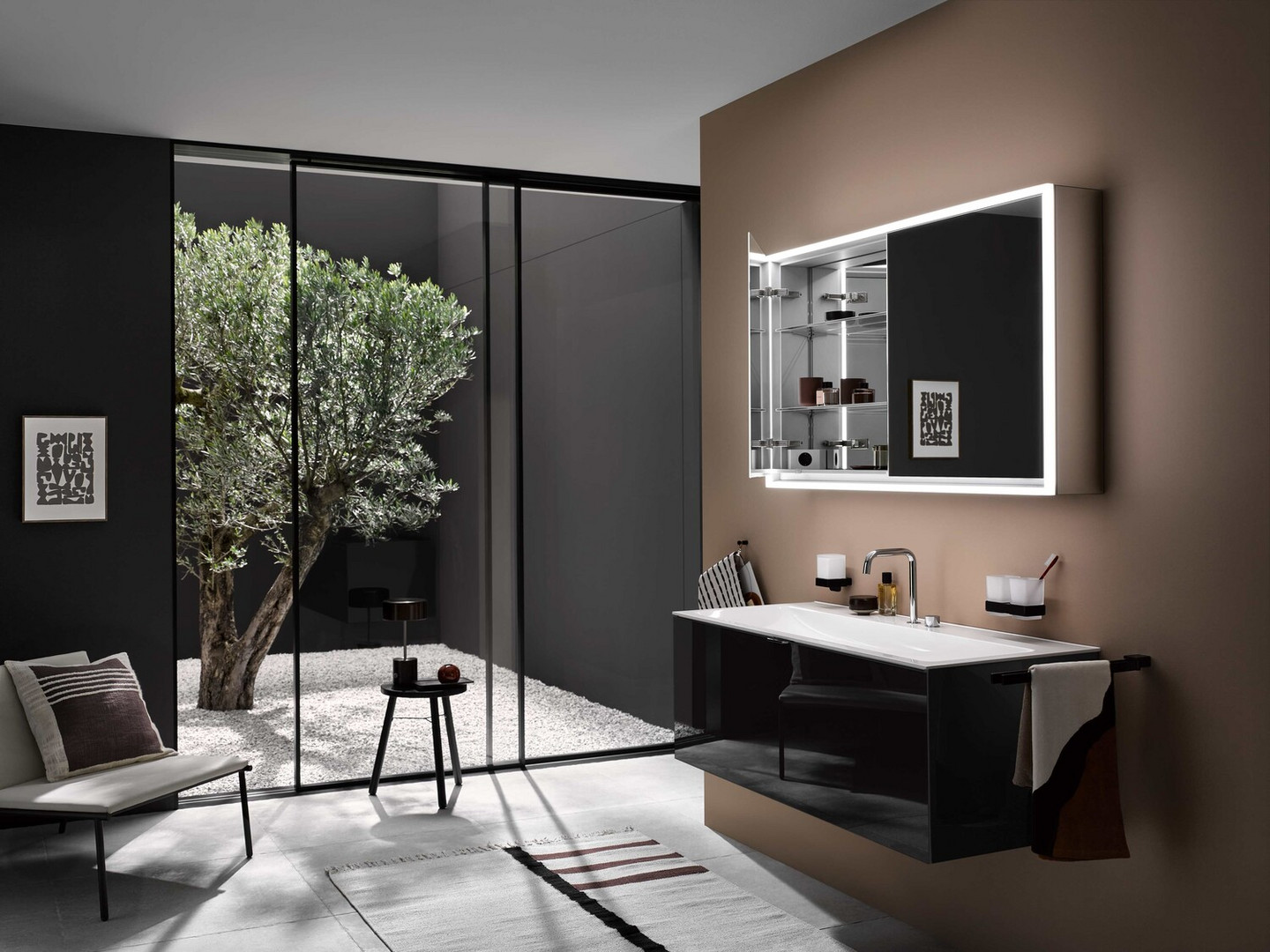 EMCO Aufputz-Lichtspiegelschrank Loft 600x733mm, LED umlaufend, 2-türig, schwarz/spiegel W451916