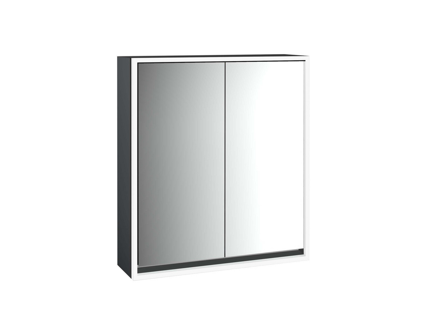 EMCO Aufputz-Lichtspiegelschrank Loft 600x733mm, LED umlaufend, 2-türig, schwarz/spiegel W451916