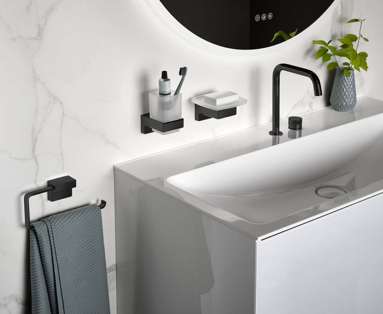 EMCO Seifenhalter Cue schwarz, Kristallglas satiniert