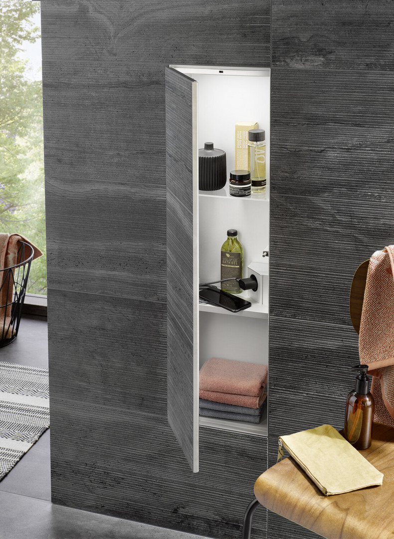 Fliese und Kleber max. 12 mm, mit 3 Fächern für WC-Papier, Reserverolle oder Feuchtpapierbox, kein Einbaurahmen erforderlich