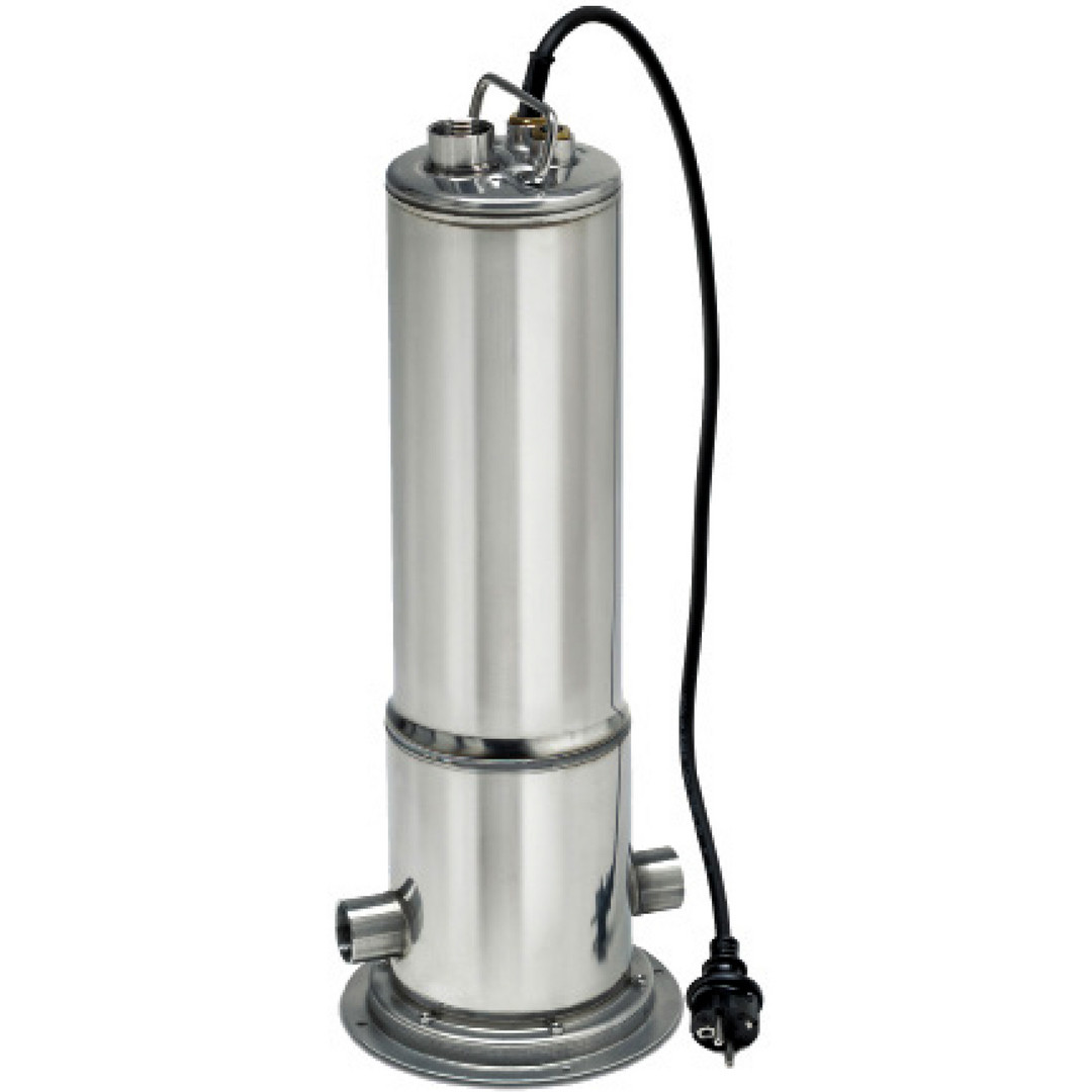mehrstufige, mediumgekühlte Tauchdruckpumpe aus Edelstahl, mit Laufrädern aus verstärktem thermoplastischem Kunststoff, für den vertikalen oder horizontalen Betrieb, für Dauerlauf und Trockenaufstellung geeignet, Pumpe ausgestattet mit integriertem Kondensator und thermischem Überlastungsschutz, 20 m Anschlusskabel mit Schutzkiontaktstecker und Pumpengehäuse aus Edelstahl mit 2 seitlichen Saugstutzen 1“ Innengewinde und Druckstutzen 1“ (Abgang nach oben) am Pumpenkopf, Pumpenfuß mit Edelstahlplatte zur Aufstellung und Fixierung, mit Tragegriff, maximale Eintauchtiefe 17 m, maximale Fördermenge an Sand 60 g/m3, fördert sauberes und klares Wasser mit einer Temperatur bis +35 °C, besonders gut geeignet zur Wasserversorgung aus Zisternen, in Kombination mit den Trinkwassernachspeisemodulen ServCube und PowerServ einsetzbar