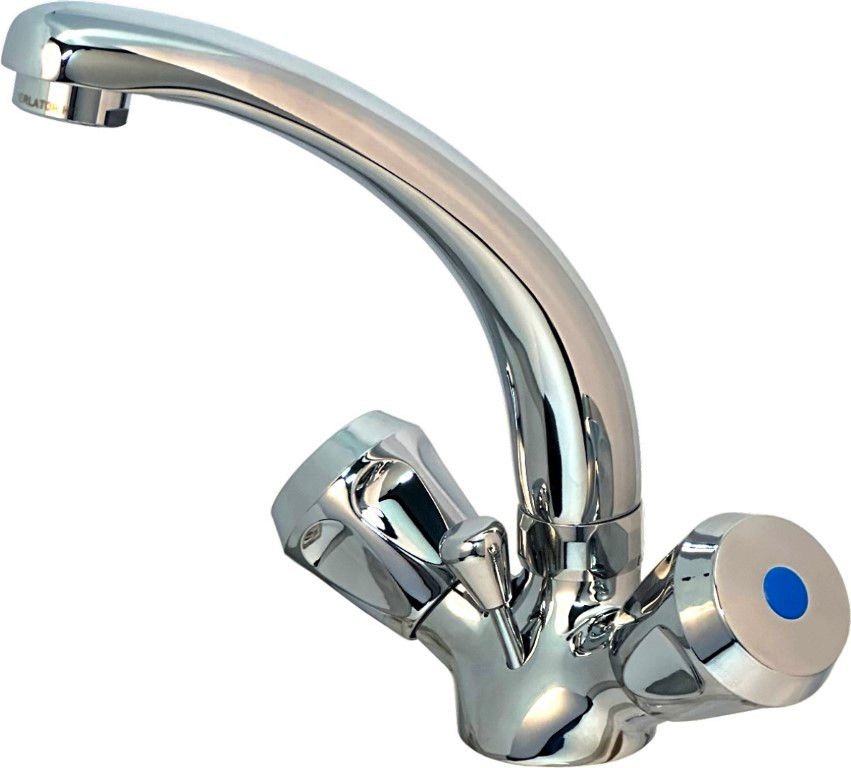 FORMAT Basic 2.0 Waschtisch-Zweigriffarmatur mit Ablaufgarnitur, Guss-Schwenkauslauf 120mm, chrom