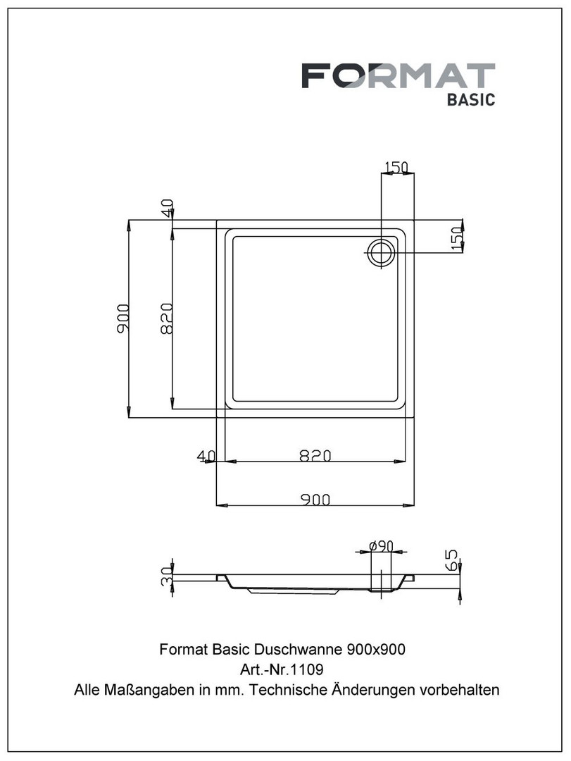 FORMAT Basic Acryl-Duschwanne weiß, 90 x 90 x 6,5 cm