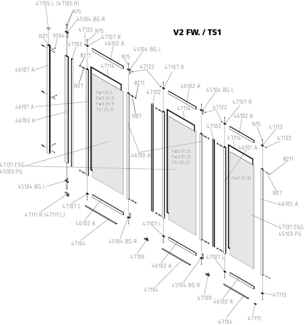 FORMAT Basic Ganzglas-Faltwand 2-tlg. silbermatt, 1151-1167x1400mm, Echtglas klar