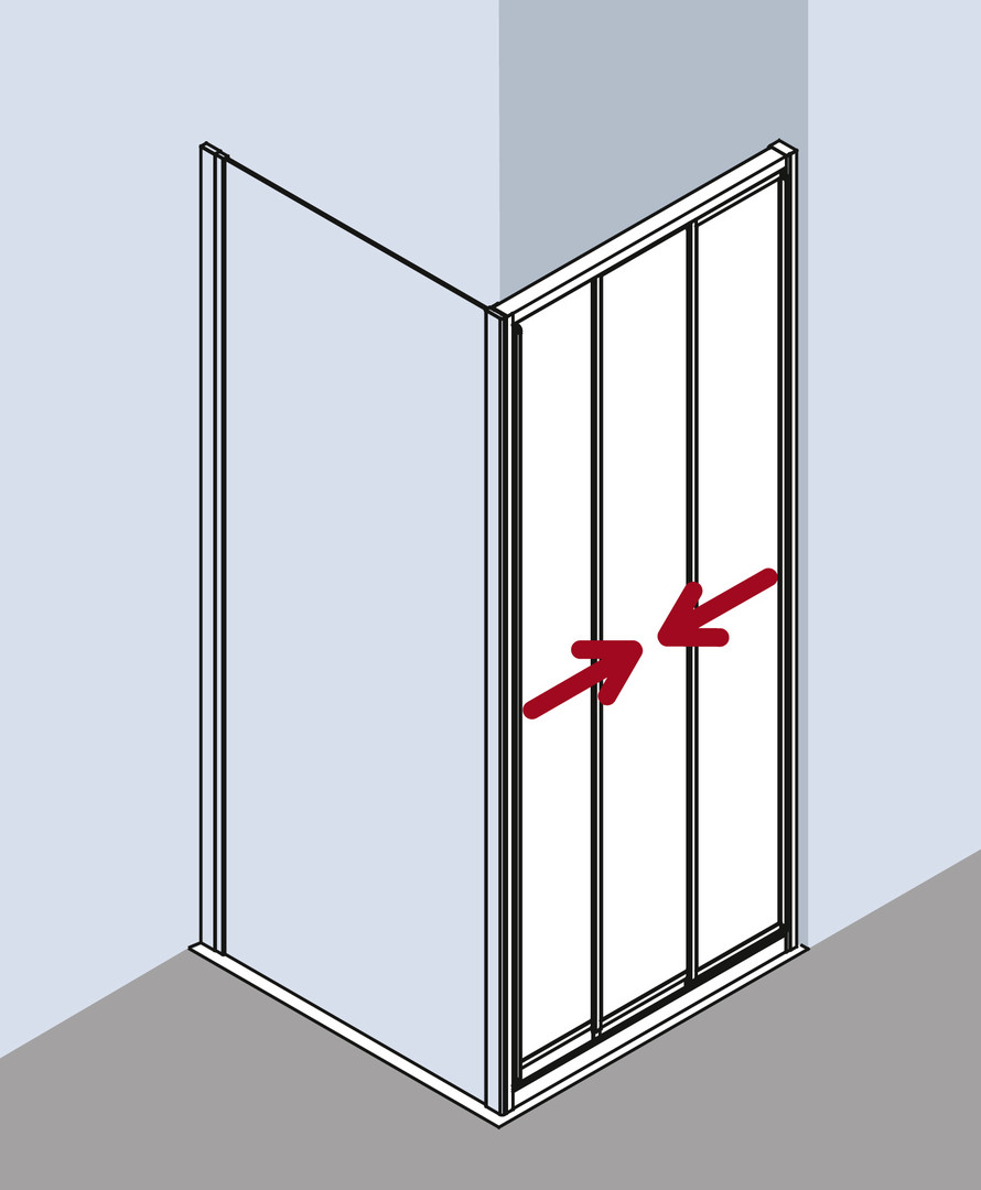 zum Einbau in einer Nische und zur Kombination mit I2 TWO Seitenwand/I2 TWO Seitenwand verkürzt, gerahmte Tür mit drei Gleittürsegmenten, nach rechts und links öffnend, Verglasung mit 3 mm Einscheiben-Sicherheitsglas nach DIN EN 12150, Profile und Griffleisten aus hochwertigem eloxiertem Aluminium, Verstellmöglichkeit im Wandprofil 12 mm, Verbreiterung im Rahmen 16 mm, zuverlässiger Haltefeder-Türverschluss und durchgehende Dichtprofile, mit Bodenprofil (Höhe 47 mm), mit Befestigungsmaterial, Made in Germany, geprüft nach DIN EN 14428 (CE) und PPP 53005 (TÜV/GS), 20 Jahre Ersatzteil-Nachkaufsicherheit nach Auslauf des Modells, Qualitätssicherungssystem zertifiziert nach DIN EN ISO 9001:2015, Umweltmanagement zertifiziert nach DIN EN 14001:2015, Energiemanagement zertifiziert nach DIN EN 50001:2011