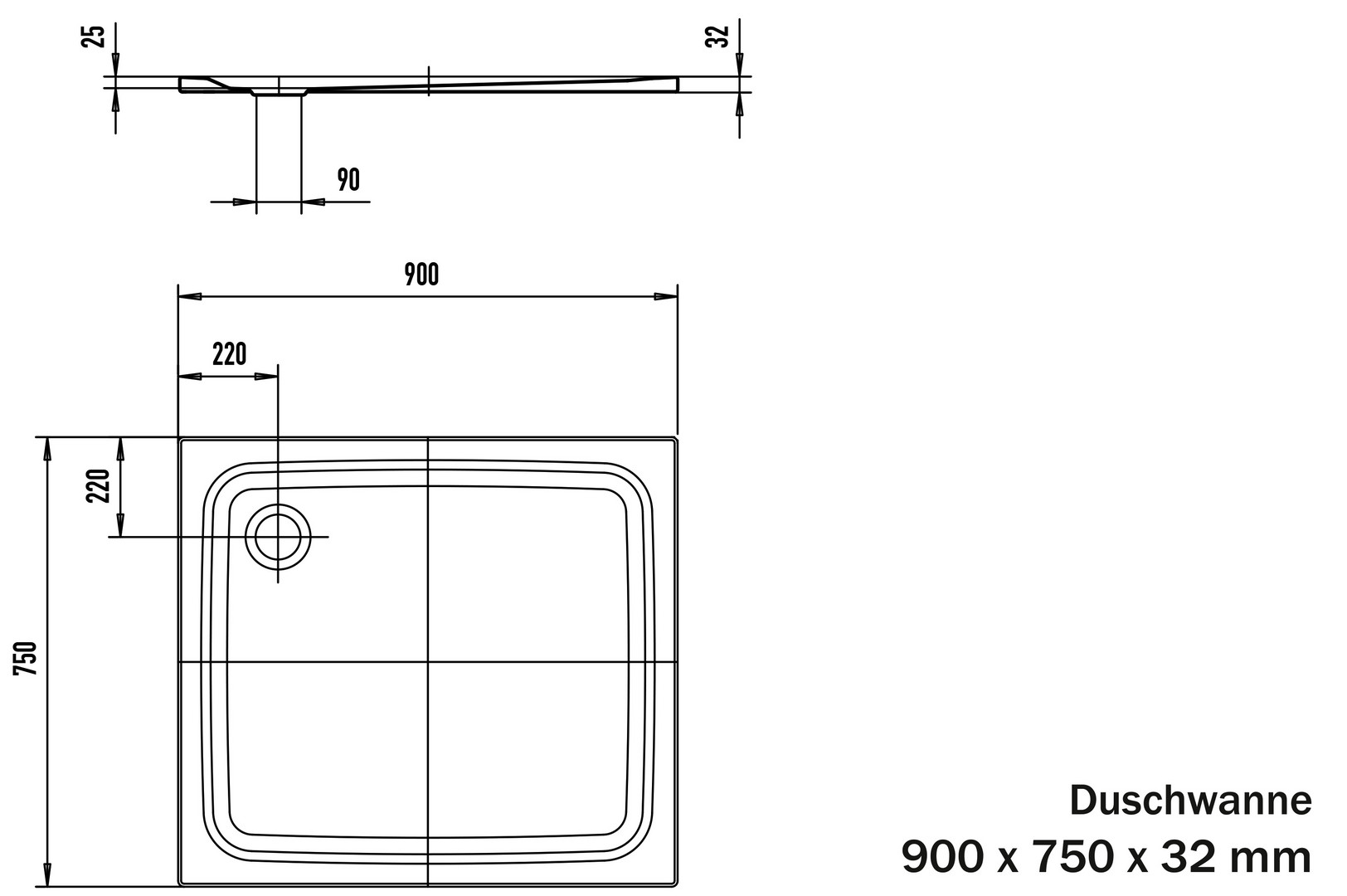 FORMAT Basic Stahl-Duschwanne mit Anti-Rutsch-Beschichtung, 90 x 75 x 2,5 cm, alpinweiß matt
