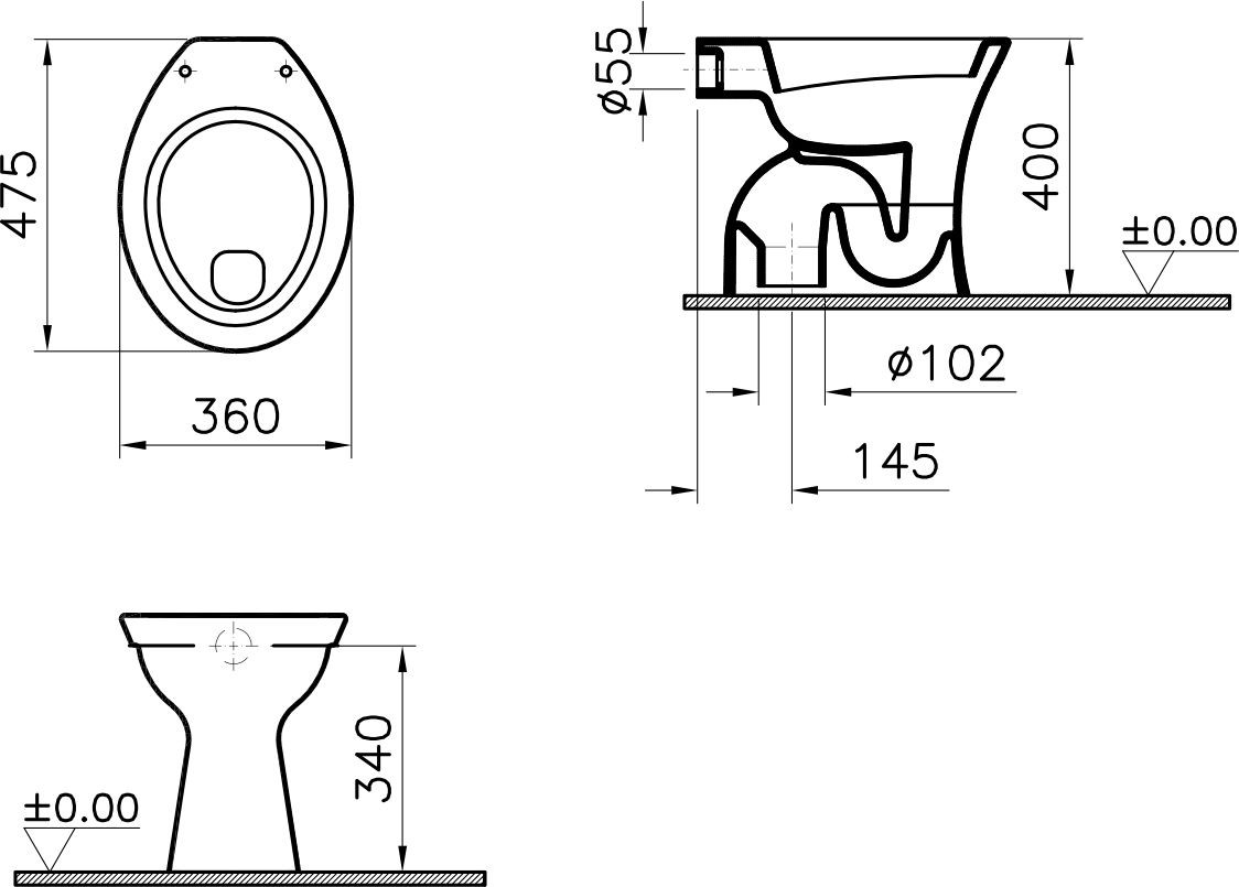 FORMAT Basic Stand-Flachspül-WC 36 x 47,5 cm, Abgang senkrecht, weiß