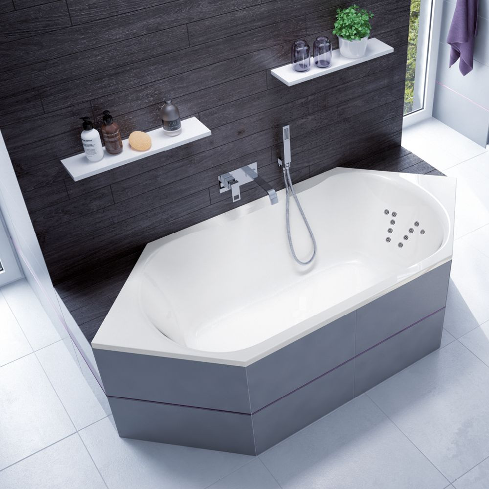 FORMAT Design 6-Eck-Poolwanne 190 x 90 cm, Vital, Rückendüsen rechts, weiß