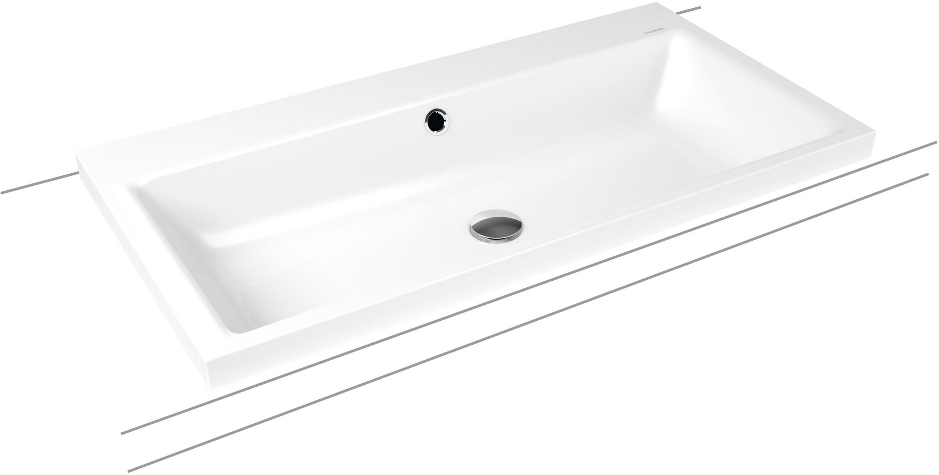 FORMAT Design Aufsatzwaschtisch 90 x 46 x 4 cm, weiß Perl-Effekt, ohne Hahnloch W31090