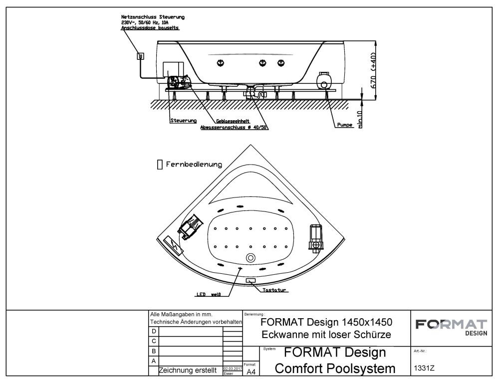 FORMAT Design Eck-Poolwanne 145 x 145 cm, Comfort, weiß, mit Schürze