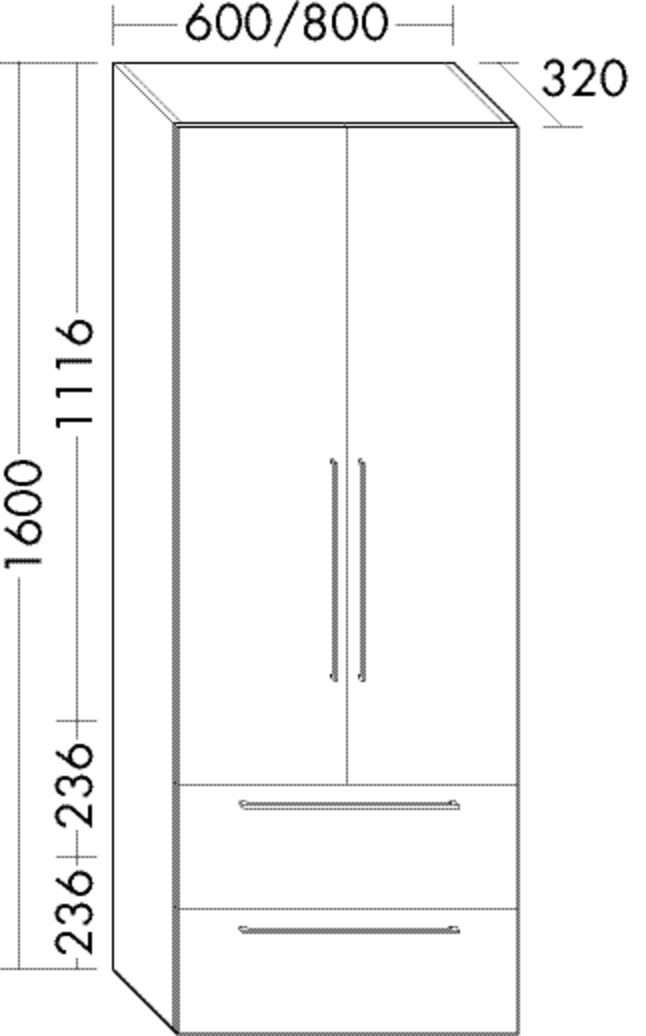FORMAT Design Hochschrank HSOT060 600x1600x320mm, 2 Türen, weiß Matt W384319