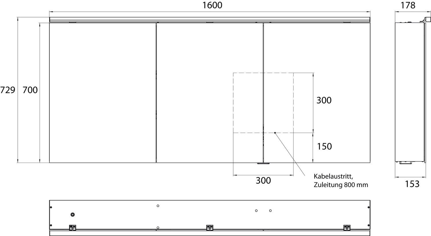 FORMAT Design Lichtspiegelschrank Pure 2 Classic 1600 x 700 x 153 mm, 3 Türen, chrom, mit Unterlicht