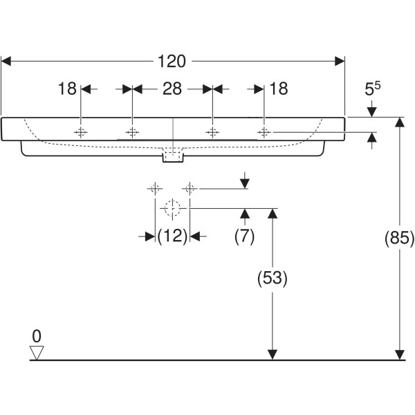 FORMAT Design Waschtisch 120 x 48,5 cm, weiß, ohne Hahnloch, mit Überlauf W31051