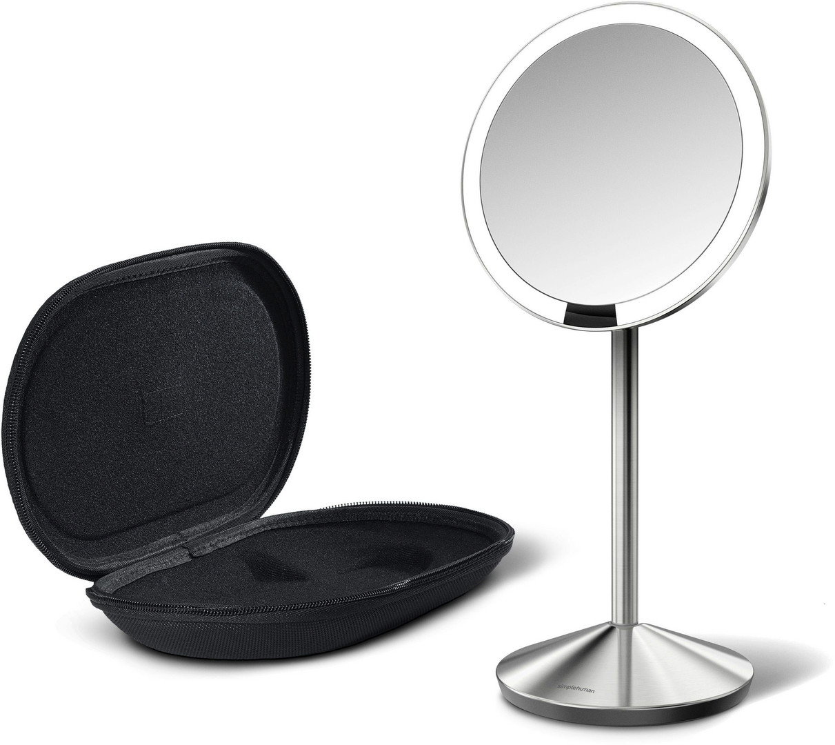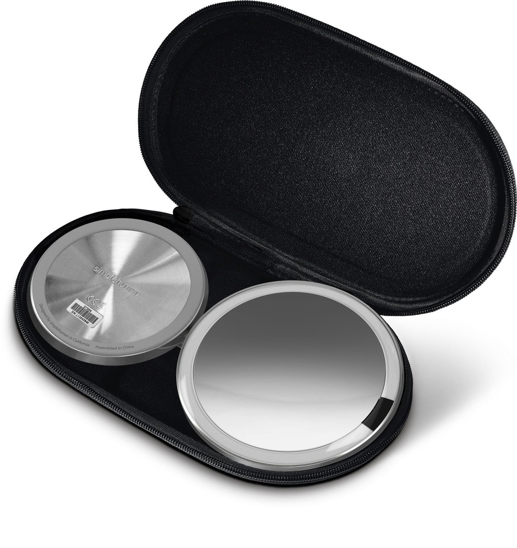 FORMAT Plus Sensor-Kosmetikspiegel 12cm, 10-fache Vergrößerung, mit Transporttasche, gebürsteter Edelstahl