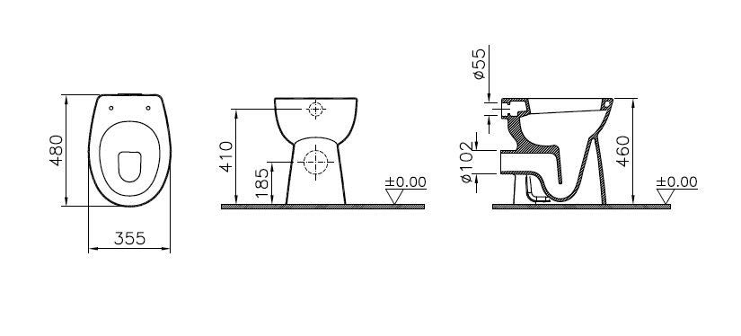 FORMAT Plus Stand-Flachspüler weiß, 35,5x48cm, Rollstuhlgerecht, AW, Keramikhöhe 46cm