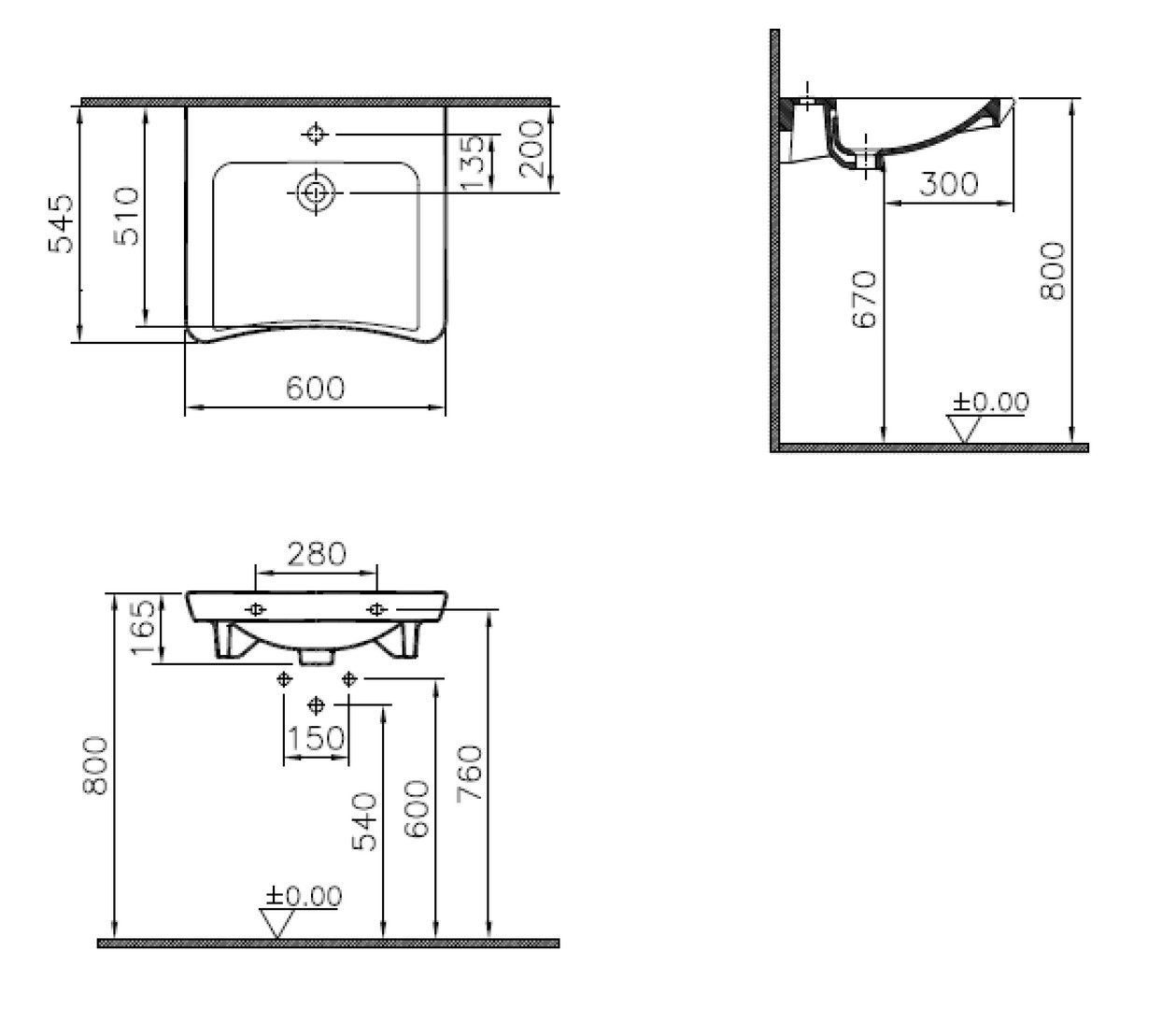 FORMAT Plus Waschtisch 60 x 54,5/51 cm, weiß, ohne Überlauf und Hahnloch