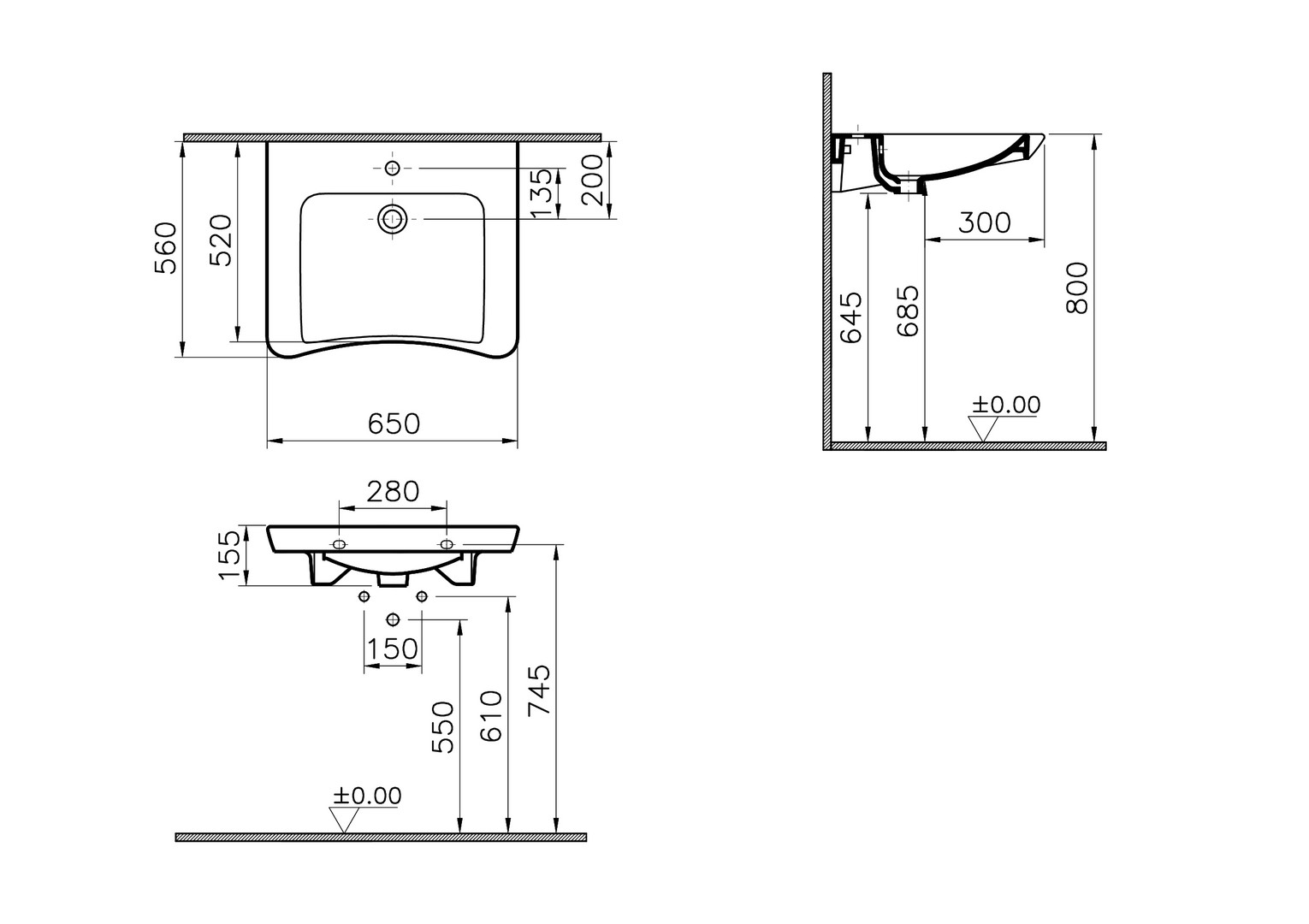 FORMAT Plus Waschtisch 65 x 56 cm, weiß, mit Überlauf, Hahnloch mittig 247132