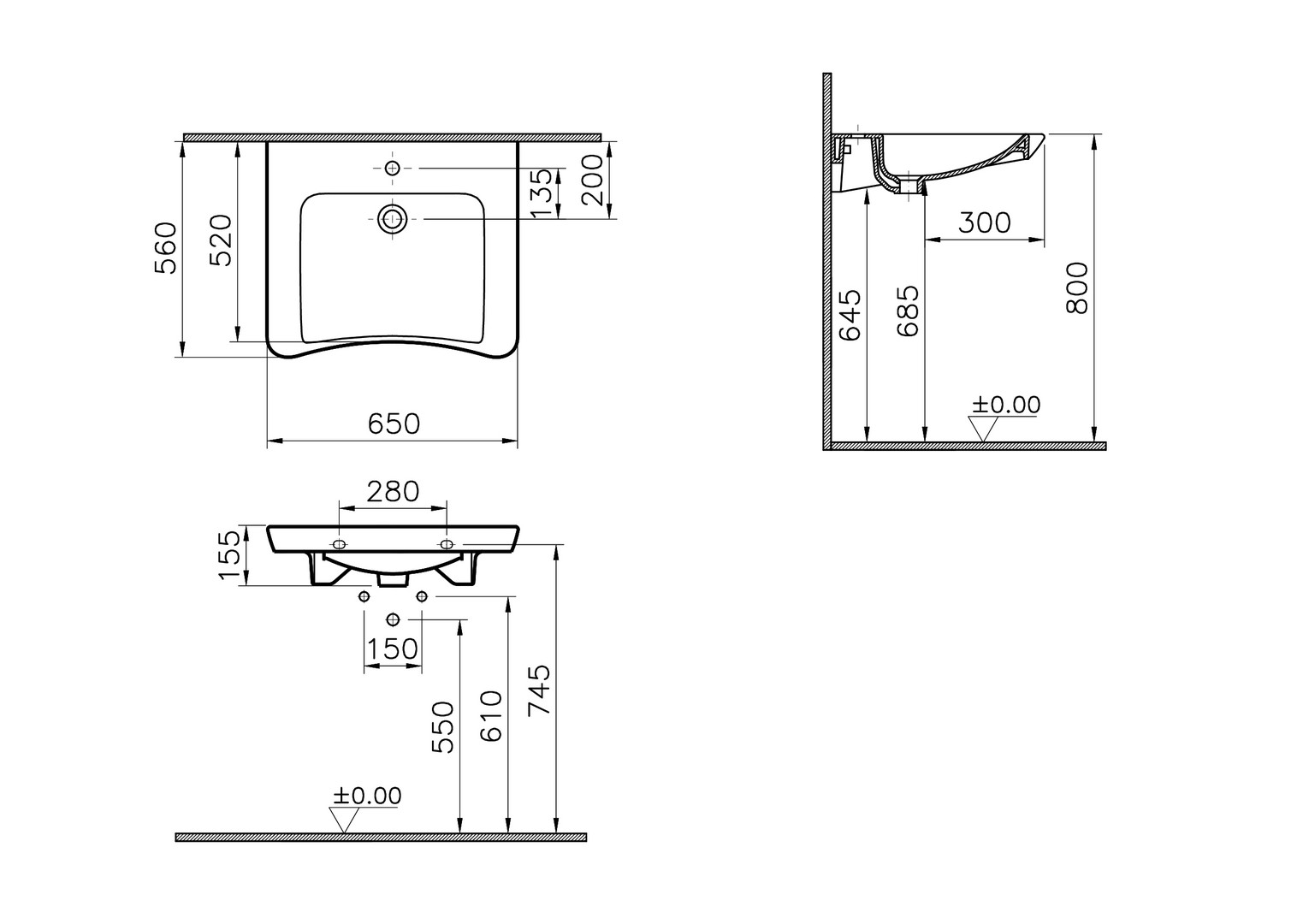 FORMAT Plus Waschtisch 65 x 56 cm, weiß, ohne Überlauf, Hahnloch mittig W31010