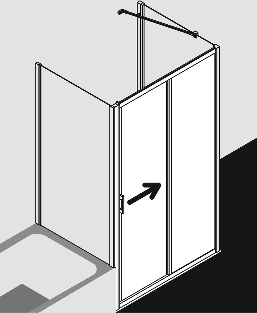 FORMAT Pro 2.0 Gleittür 2-tlg. mit Festfeld silber hochglanz, rechts, 120 x 185 cm, ESG klar W221999