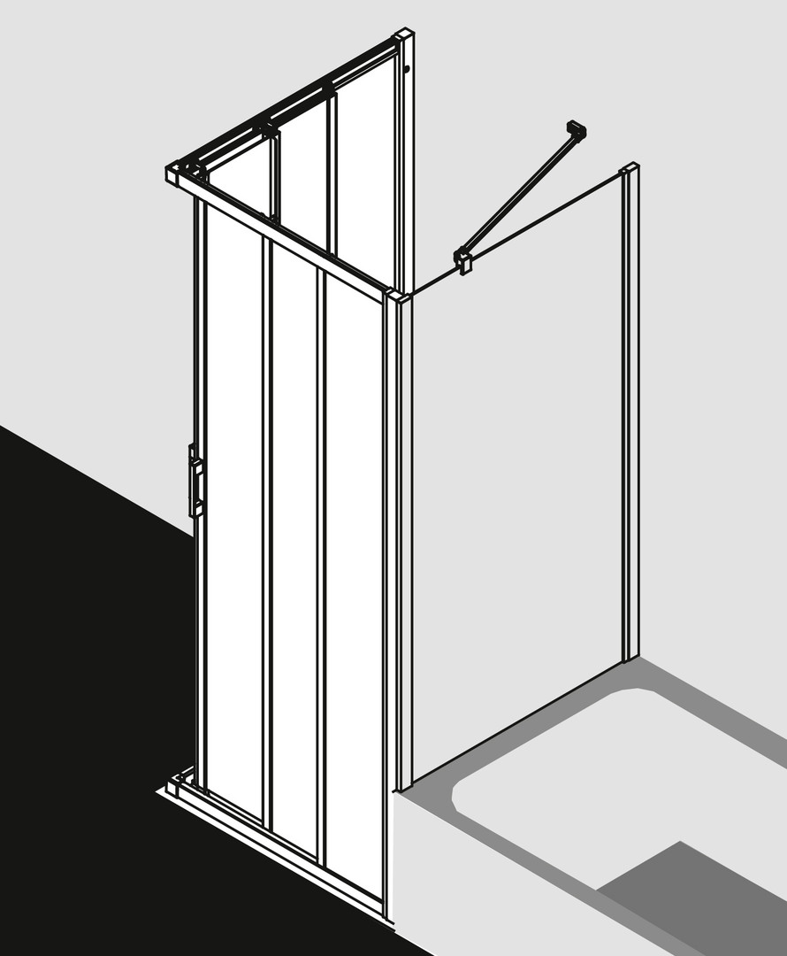 FORMAT Pro 2.0 Gleittür-Eckeinstiegshälfte 3-tlg. silber hochglanz, rechts, 75 x 185 cm, ESG klar Clean W221630