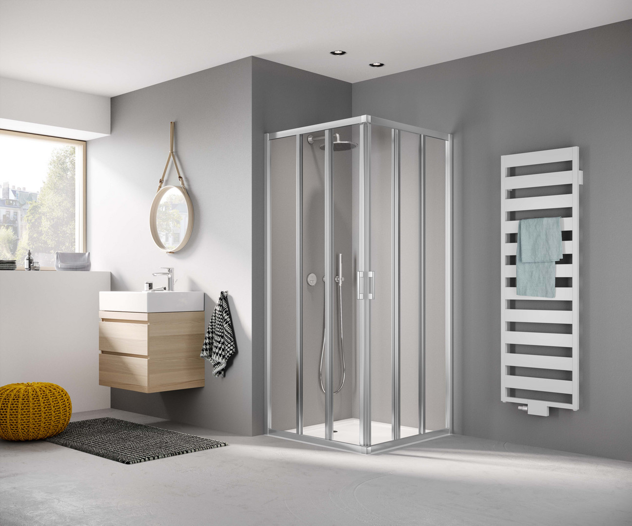 FORMAT Pro 2.0 Gleittür-Eckeinstiegshälfte 3-tlg. silber hochglanz, rechts, 80 x 185 cm, ESG klar Clean W221632