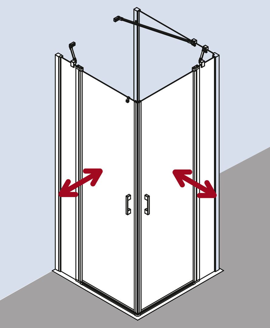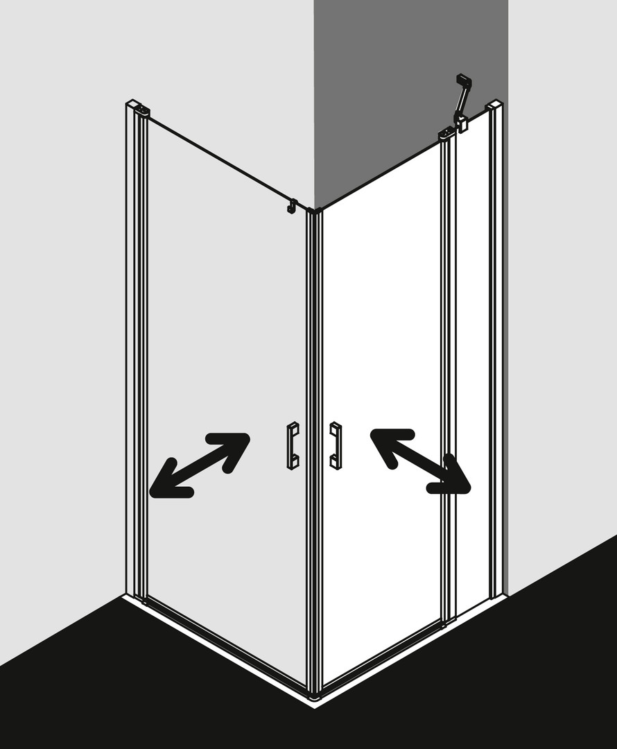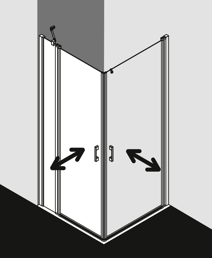 FORMAT Pro 2.0 Pendeltür-Eckeinstiegshälfte mit Festfeld silber hochglanz, 2-tlg, rechts, 113 x 200 cm, ESG klar
