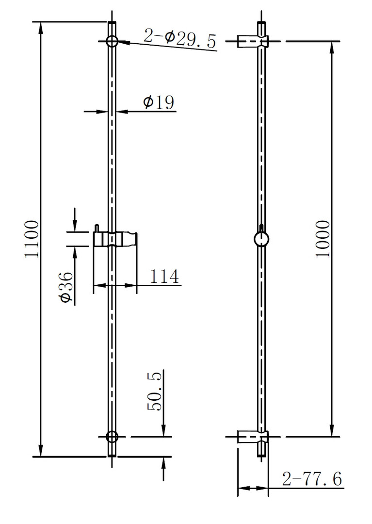 oberer Halter verstellbar, Ø 19 mm, ABS-Brausegleiter mit Druckknopf, Edelstahl-verchromt